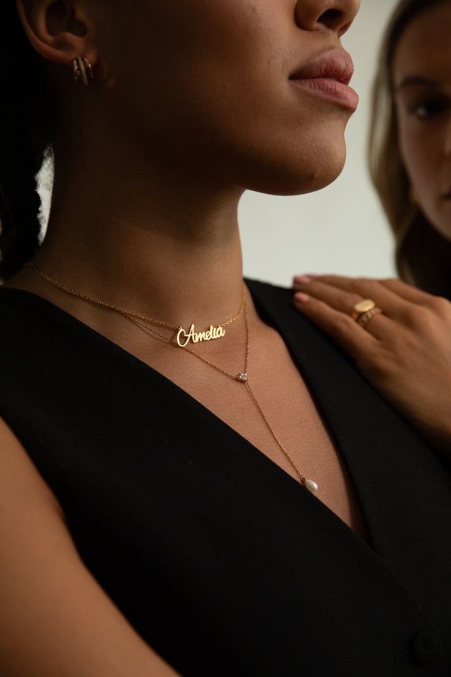 Im Gegensatz dazu ist personalisierter Schmuck in Silber die ideale Wahl für einen klaren, modernen Look und funktioniert ausgezeichnet bei kühleren Hauttönen. Wenn Du Silberschmuck kaufst, kannst Du diesen vielseitig einsetzen und leicht mit jeder Farbpalette kombinieren, besonders wirkungsvoll ist er jedoch mit Schwarz, Weiß oder Blau. Für den Alltag oder spezielle Anlässe ist personalisierter Schmuck in Silber ein Ausdruck von klassischer Eleganz, der nie aus der Mode kommt.